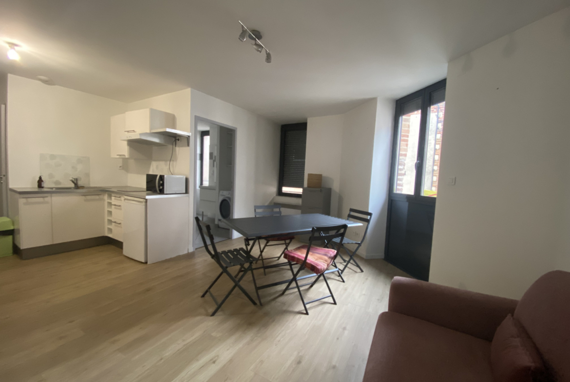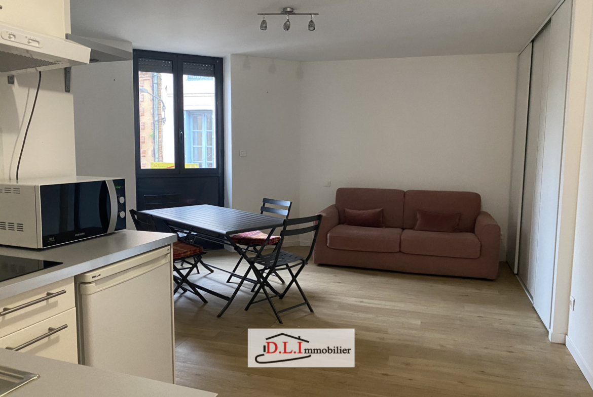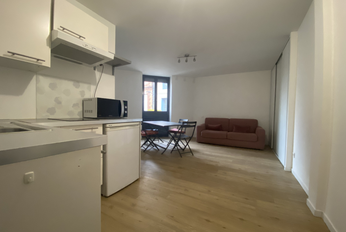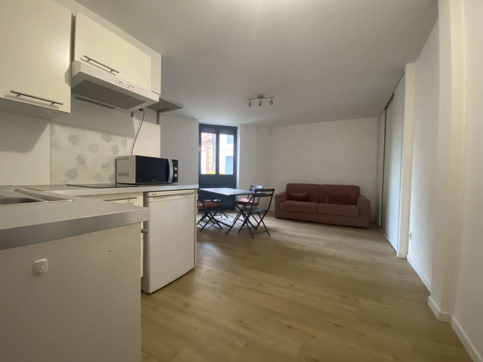 Au coeur du centre-ville dans un immeuble au premier étage un appartement de 31 m2 env. comprenant une pièce de vie avec placard et un coin cuisine aménagée et semi-équipée (hotte et plaque), une salle d’eau et WC séparé. Libre.