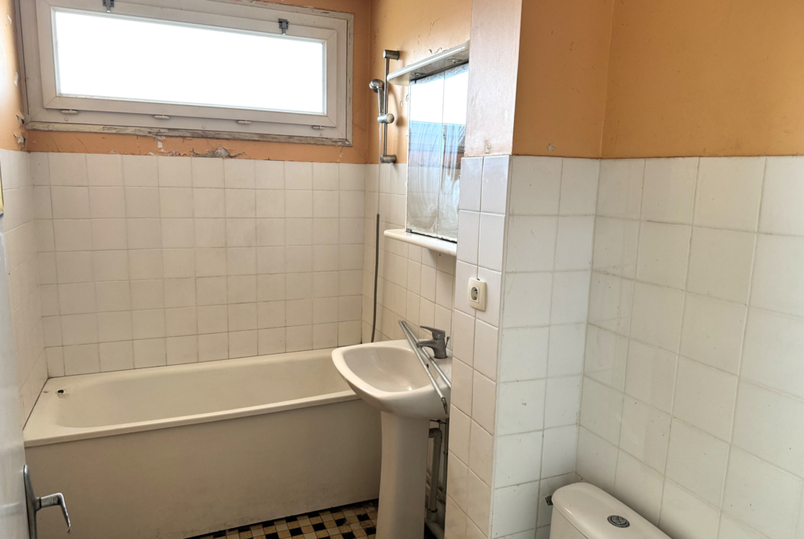 Au Sarlac, dans un immeuble en copropriété, au premier étage, un appartement 2 pièces de 46 m2 env. comprenant une entrée avec placard, un séjour avec balcon, une cuisine séparée avec balcon, une chambre avec placard et balcon, une salle de bains avec WC. De plus menuiseries PVC double vitrage, chauffage central avec chaudière individuelle gaz, VMC collective. Quelques travaux à prévoir.