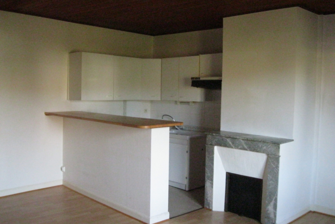 Très proche du centre-ville un appartement 2 pièces de 44 m2 env. au premier étage d’un immeuble comprenant une cuisine meublée ouverte sur le séjour, une chambre, une salle d’eau avec WC. Chauffage collectif gaz de ville. Disponible mi-novembre.