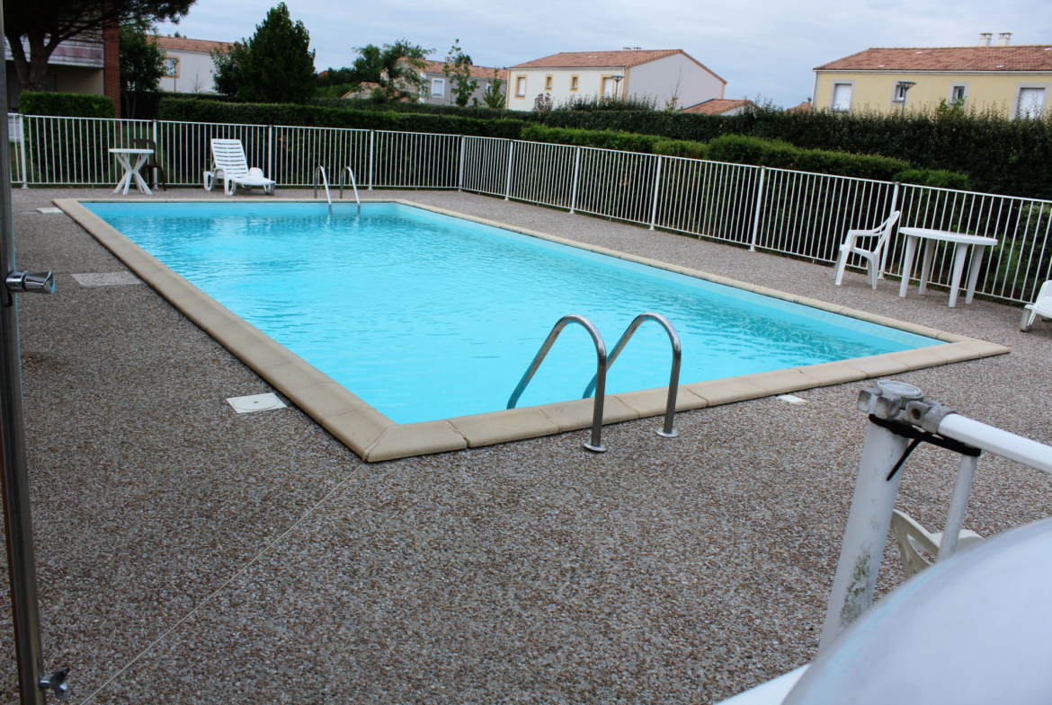 Dans une résidence sécurisée avec piscine et salle de sport un appartement 2 pièces de 35 m2 env. au 1er étage comprenant une entrée avec placard, une cuisine ouverte sur le séjour avec balcon, une chambre, une salle de bain avec WC. De plus chauffage électrique, double vitrage, une place de parking privative, local à vélo. Disponible début mi-juillet.