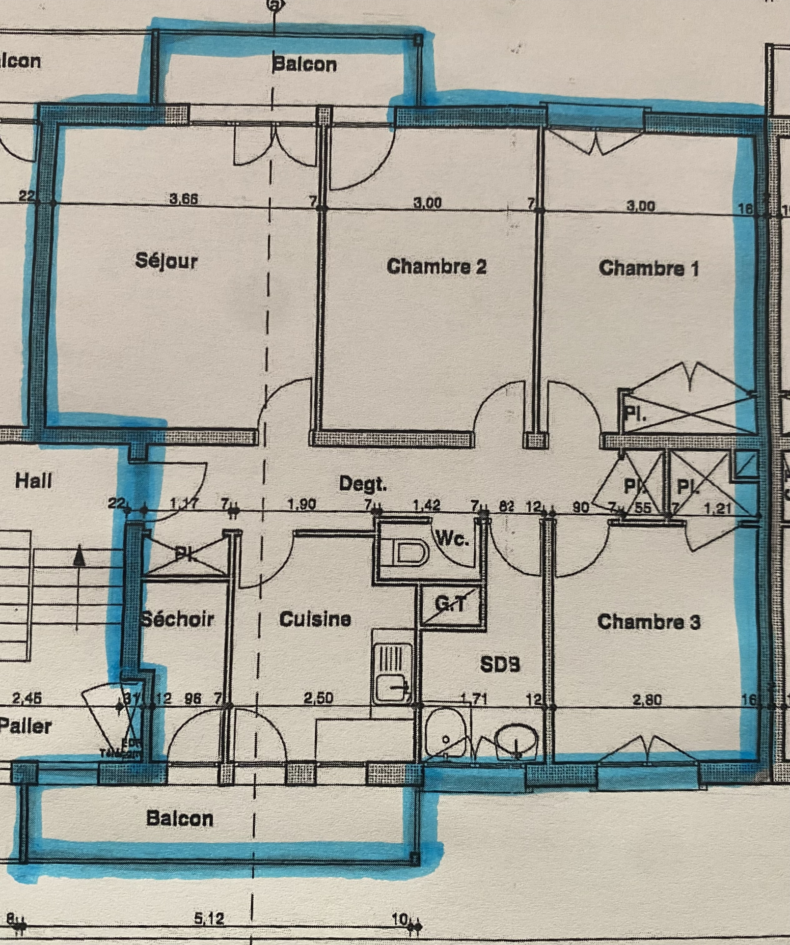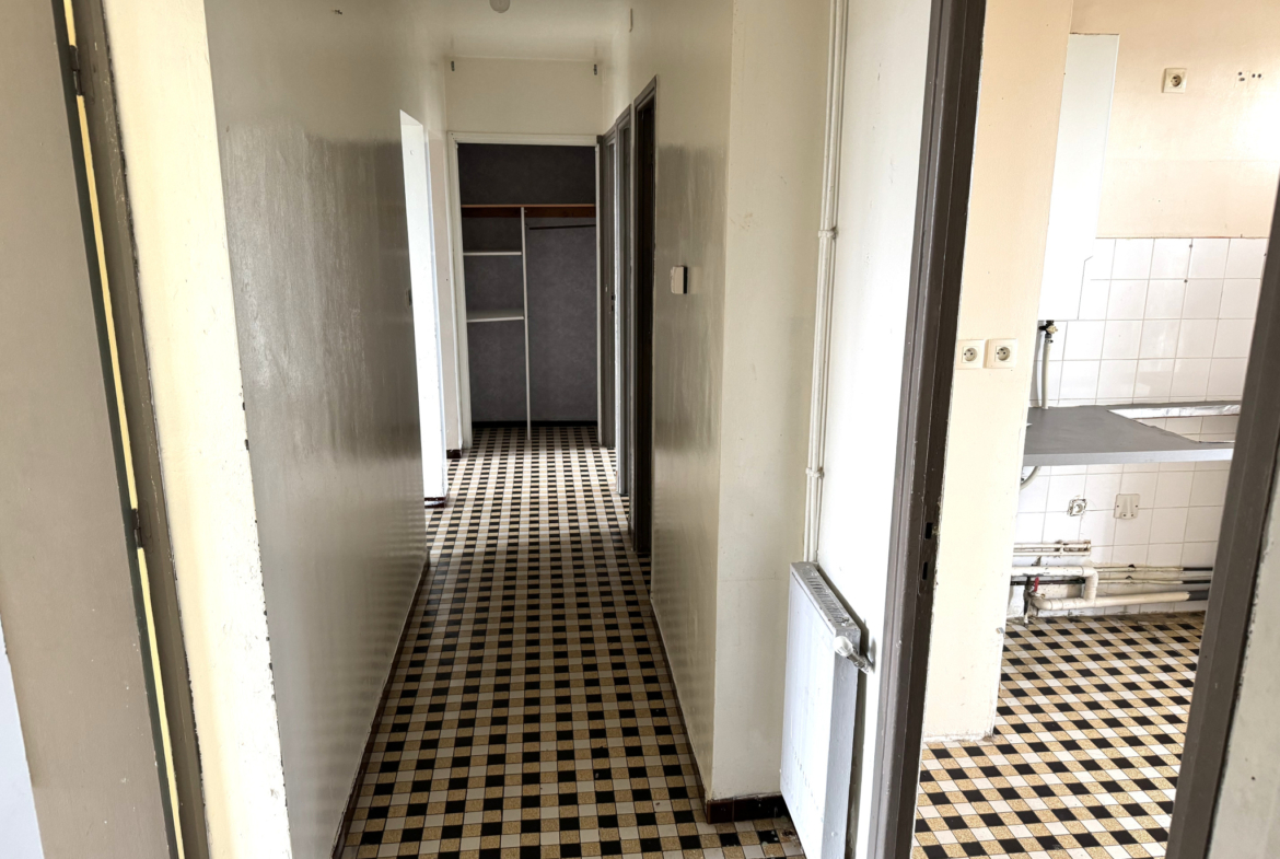 Au Sarlac, dans un immeuble en copropriété, au quatrième étage, un appartement 4 pièces de 78 m2 env. comprenant une entrée avec placards, un séjour avec balcon, une cuisine séparée avec balcon, un cellier, trois chambres dont deux avec placard, une salle de bains et un WC séparé. De plus menuiseries PVC double vitrage, chauffage central avec chaudière individuelle gaz, VMC collective. Quelques travaux à prévoir.