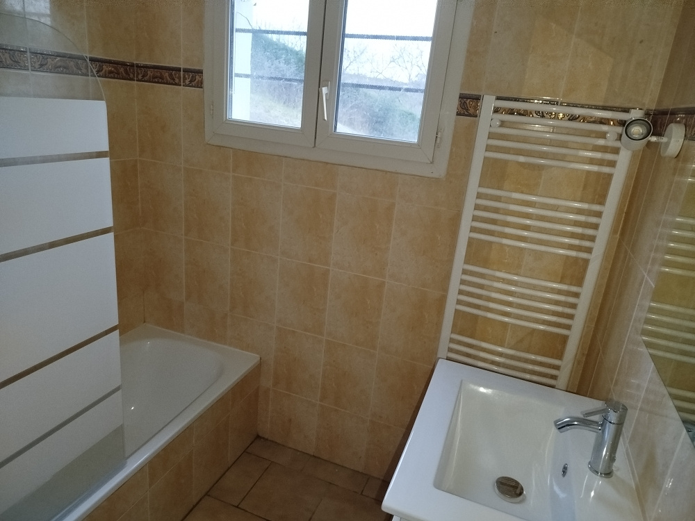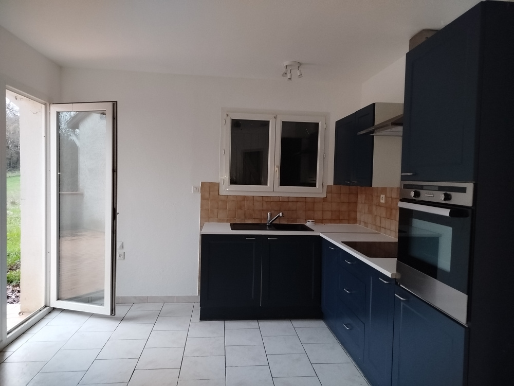 Maison de 102 m2 env. sur sous-sol, comprenant une entrée, un grand salon séjour, une cuisine semi-ouverte, un cellier, trois chambres avec placard, une salle de bain et un WC. Terrain clos d’environ 2000 m2 et climatisation dans le séjour. Disponible.