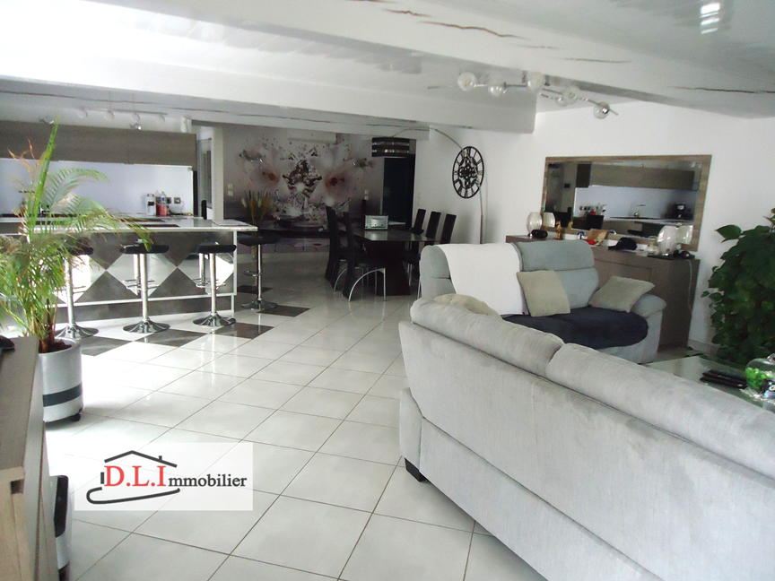 DLImmobilier vous présente, dans un quartier proche à pieds du centre-ville, mitoyenne sur un côté, une maison sur deux niveaux de 196 m2 env. avec garage, comprenant en rez de chaussée un grand salon séjour avec une cuisine aménagée ouverte, une chambre, deux pièces, une chambre en duplex, un cellier et une salle d’eau avec WC.