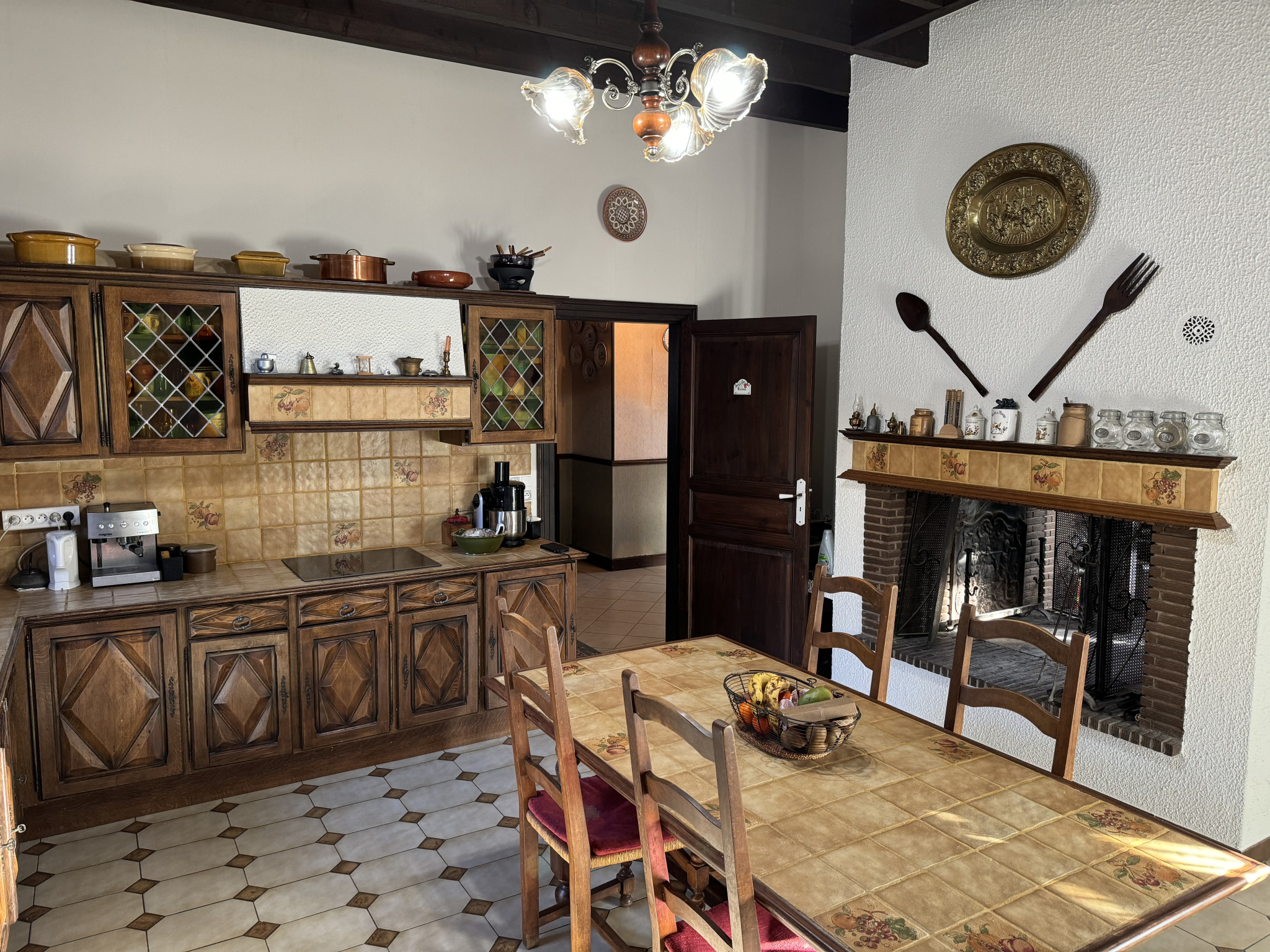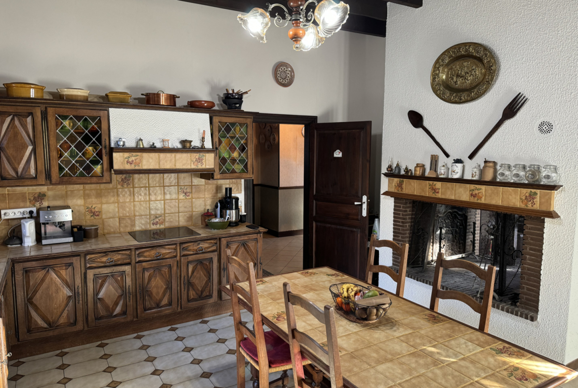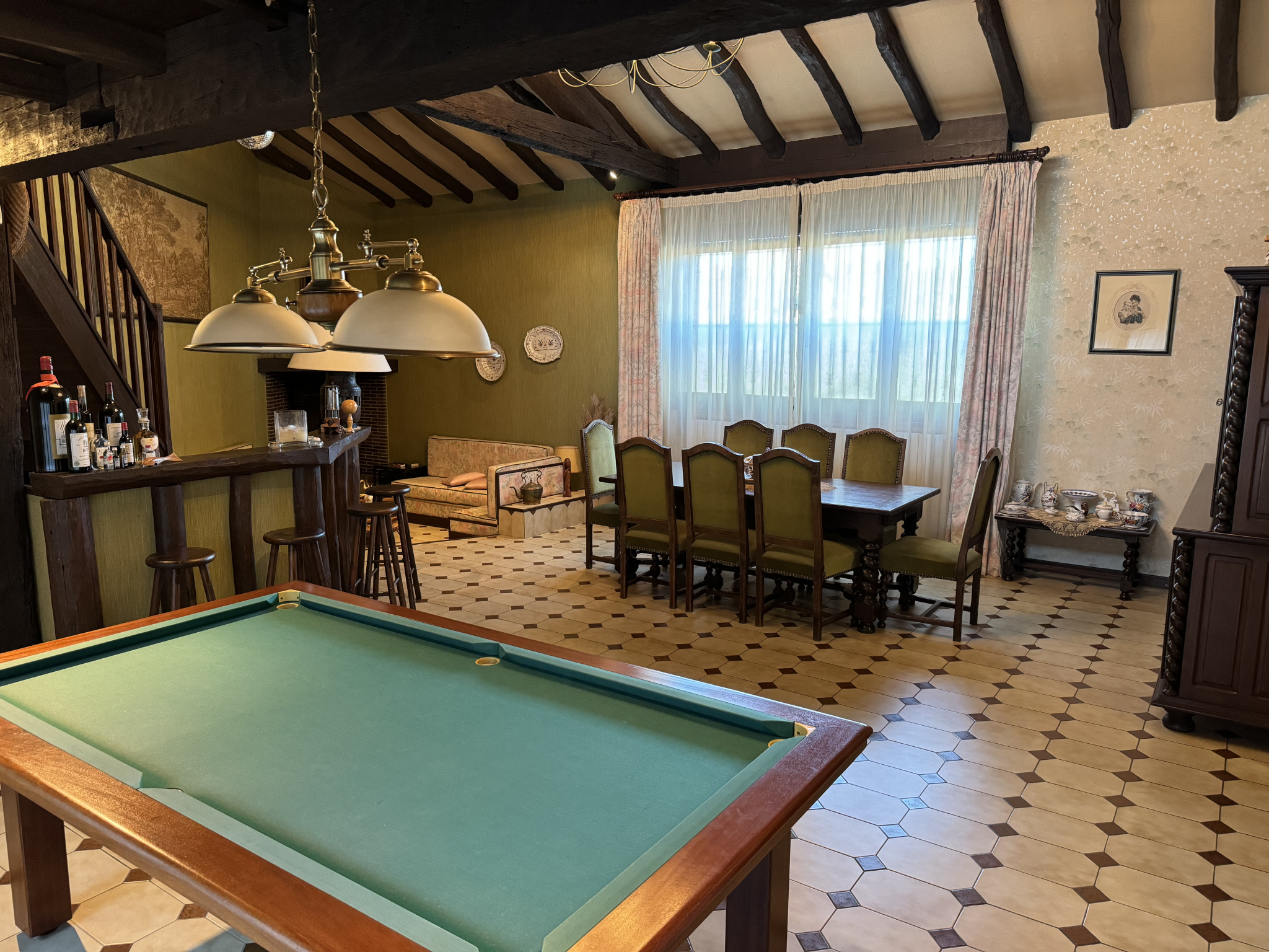 De plus une buanderie/cellier, un abri bois, un grand garage avec atelier, un patio, terrasses, un puits, arrosage automatique. Pompe à chaleur air/eau de 2022.