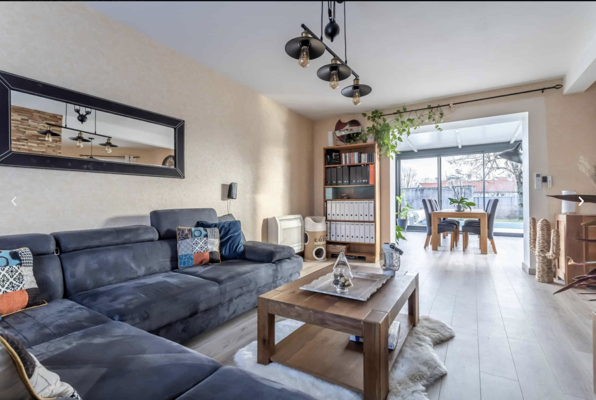 Maison meublée de 125 m2 env. sur deux niveaux composée en rdc d’une entrée, d’une cuisine aménagée et équipée, un grand salon séjour, une véranda, un cellier et un WC séparé.