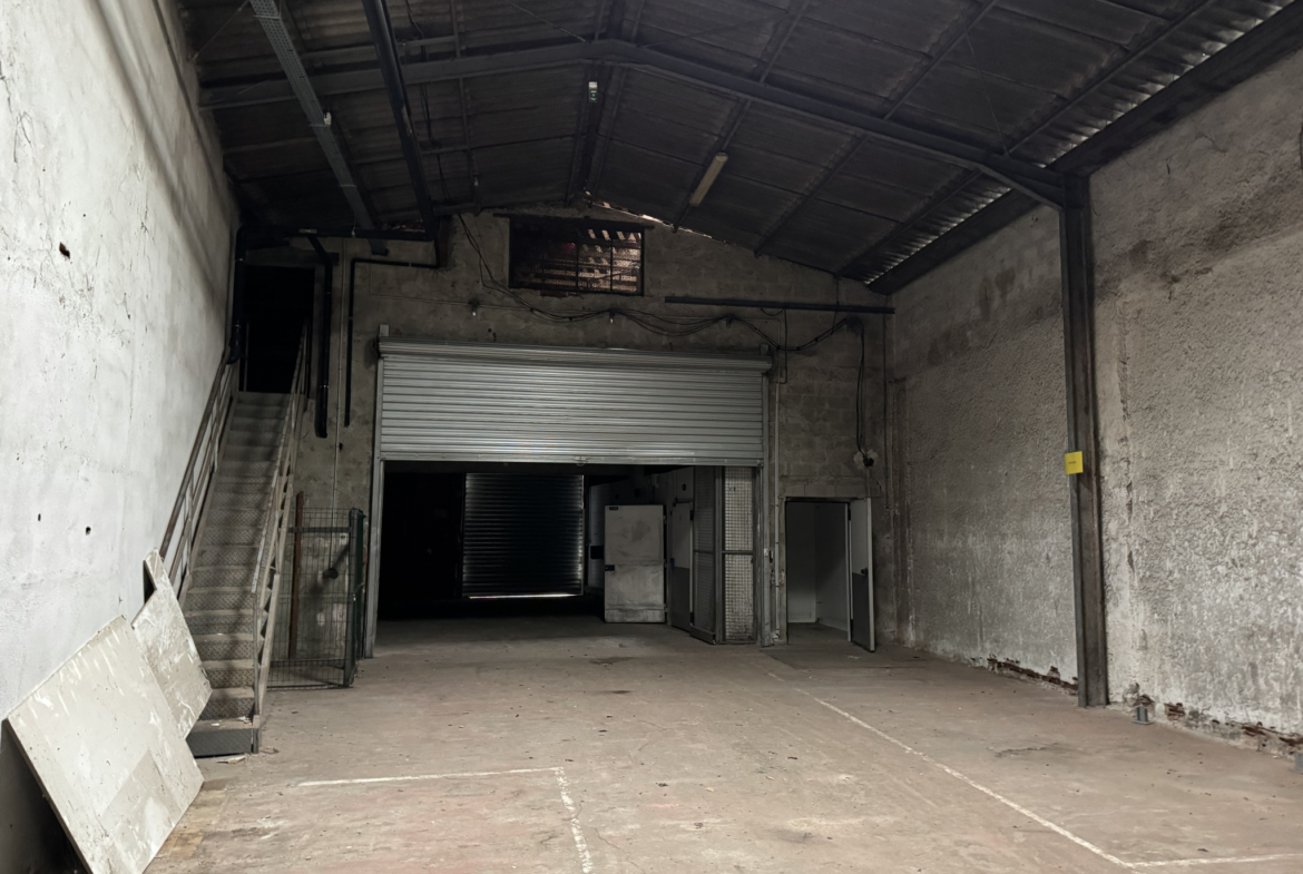 Bâtiment avec bureau, réserve, surface de stockage, surface de Buy et parking.